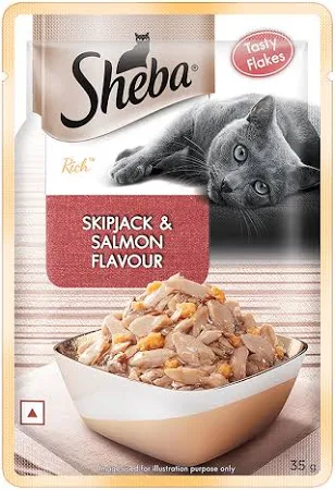 Give your cat a delightful gourmet meal with Sheba Skipjack & Salmon in Gravy – 35g.